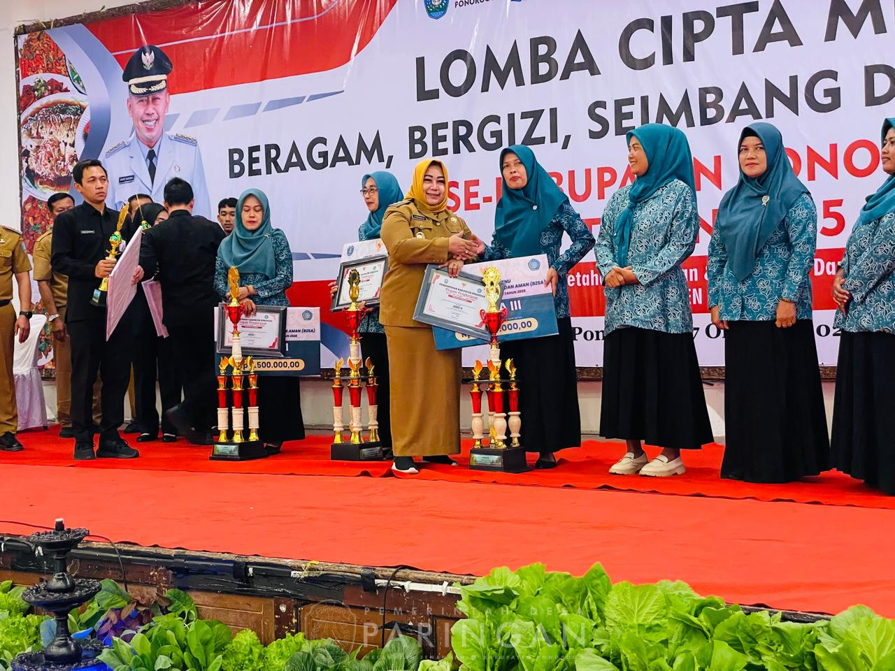 Kegiatan Lomba Cipta Menu B2SA tahun 2025 diselenggarakan oleh Dinas Pertanian, Ketahanan Pangan dan Perikanan Kabupaten Ponorogo ini, di hadiri secara langsung, Kang Bupati Sugiri Sancoko, Wakil Bupati, Bunda Lisdiarita, Forkopimda, Ketua dan Pengurus TP PKK Kabupaten Ponorogo, jajaran Camat serta pengurus PKK se- Kabupaten Ponorogo.